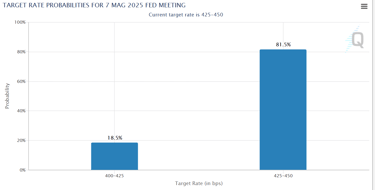 Dai grafici è possibile osservare come le aspettative degli operatori puntino su un possibile taglio dei tassi da parte della FED nella riunione di giugno.