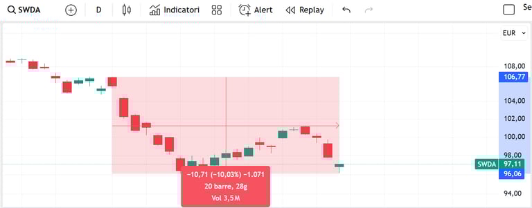 Dopo un inizio di mese decisamente negativo, con ben 7 sedute consecutive in rosso, sembrava che la discesa fosse giunta al termine, e i mercati avevano iniziato a risalire. Tuttavia, verso la fine del mese, i nuovi annunci di dazi e tariffe da parte di Donald Trump hanno riacceso la pressione ribassista, facendo riprendere la discesa.
